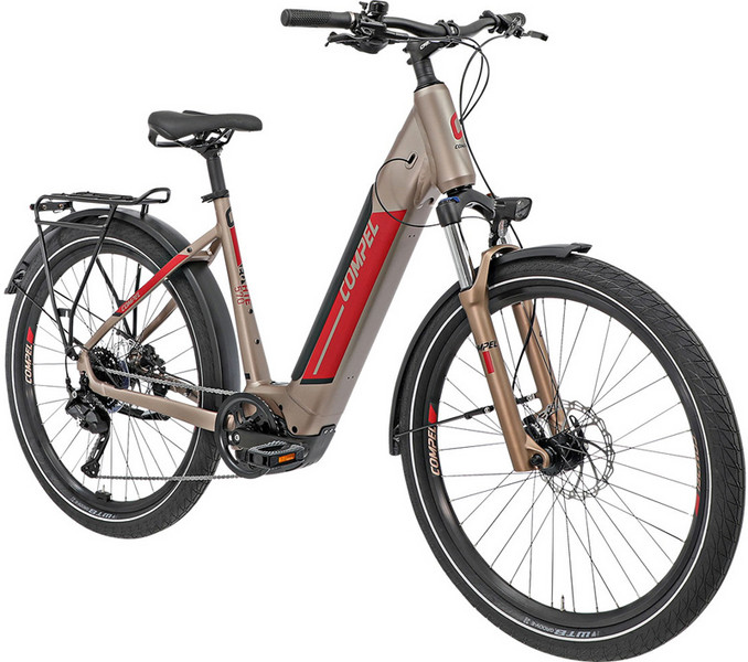 Das COMPEL HTE 570 EQ WAVE E-Trekkingbike mit Federgabel vereint starke Leistung und komfortables Design – ideal für alltägliche Fahrten und längere Touren.